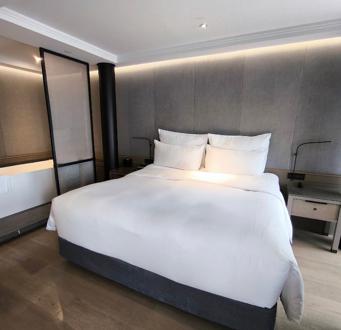 The room felt modern and thoughtfully designed, with a minimalist style that’s both stylish and comfortable. It wasn’t overly large, but the layout made great use of space, and everything felt intentional. The bed was comfortable, the lighting was warm, and the overall vibe felt more like a stylish city apartment than a